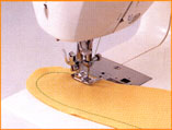 The machanism stops the needle at its lowered position when you stop sewing. It is no longer necessary to use the balance wheel to lower the needle before rotating the fabric when contiuously starting and stopping sewing.