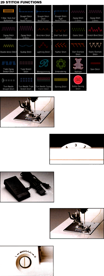 - Stitch balance control assures equal stitch density on